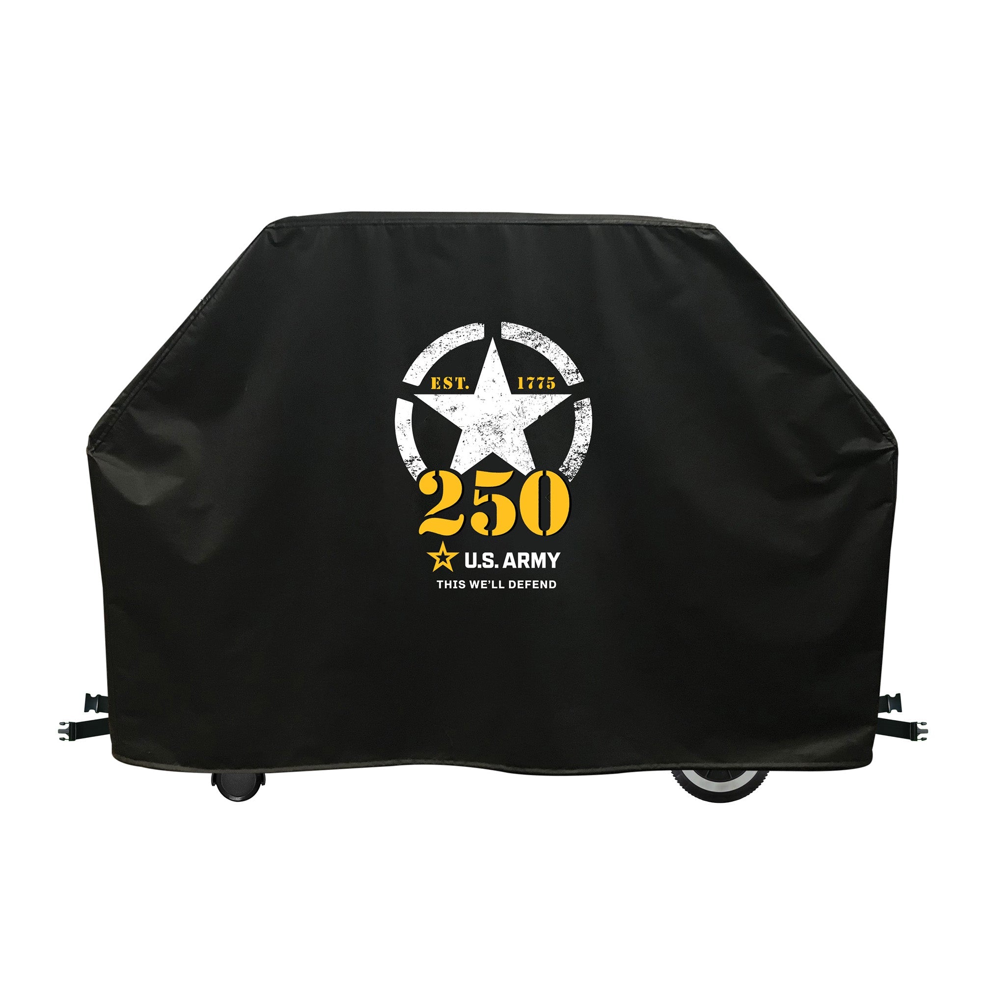 The United States Army 250th Anniversary Grill Cover is a testament to durability, crafted from highly durable, marine-grade vinyl. With its low-maintenance design, it's resistant to UV, water, stains, tears, and abrasions, ensuring your grill remains protected through all conditions. Proudly made in the USA, this grill cover combines rugged functionality with a patriotic touch, making it an excellent choice for Army enthusiasts and grill masters alike!