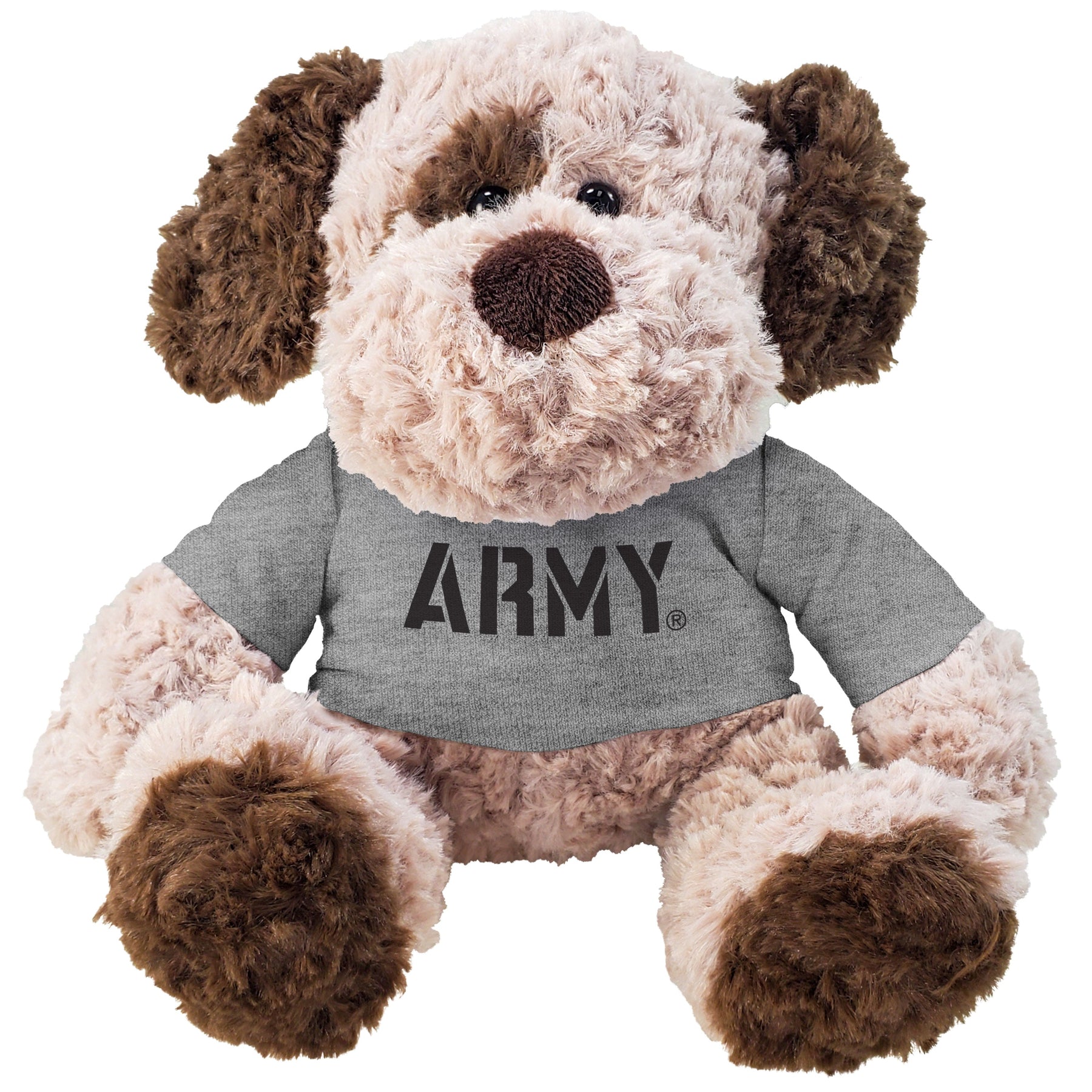 Cute as a button, the Army Patches Plush Dog is always ready for a snuggle!