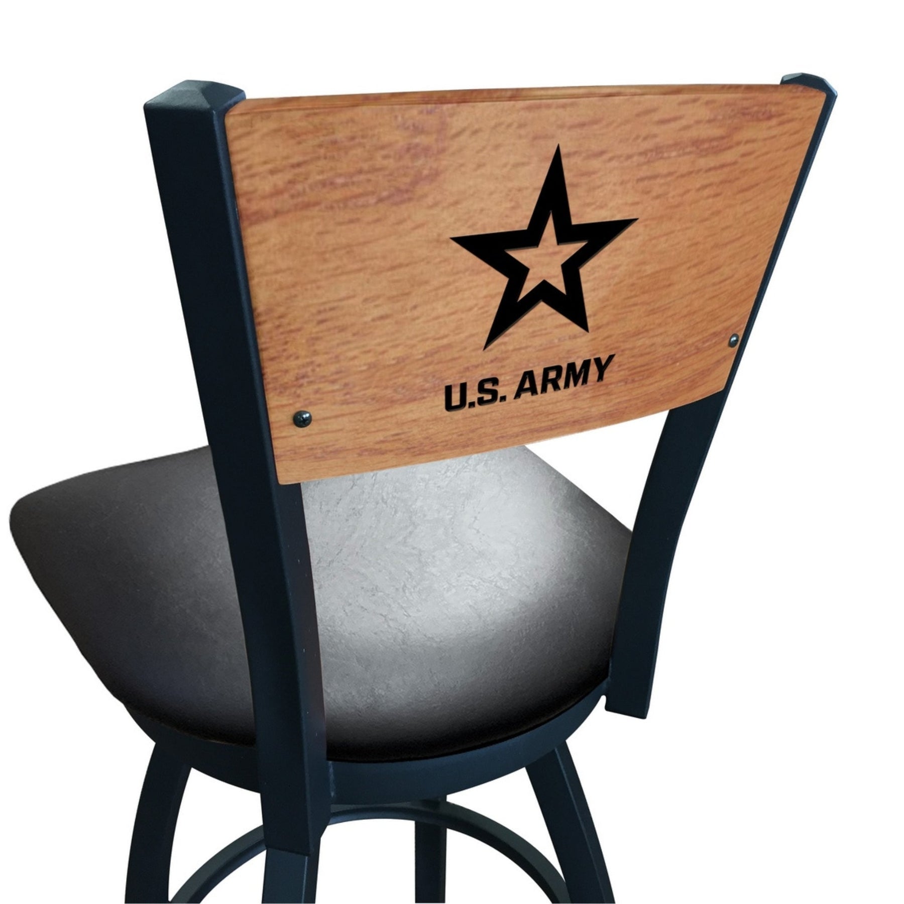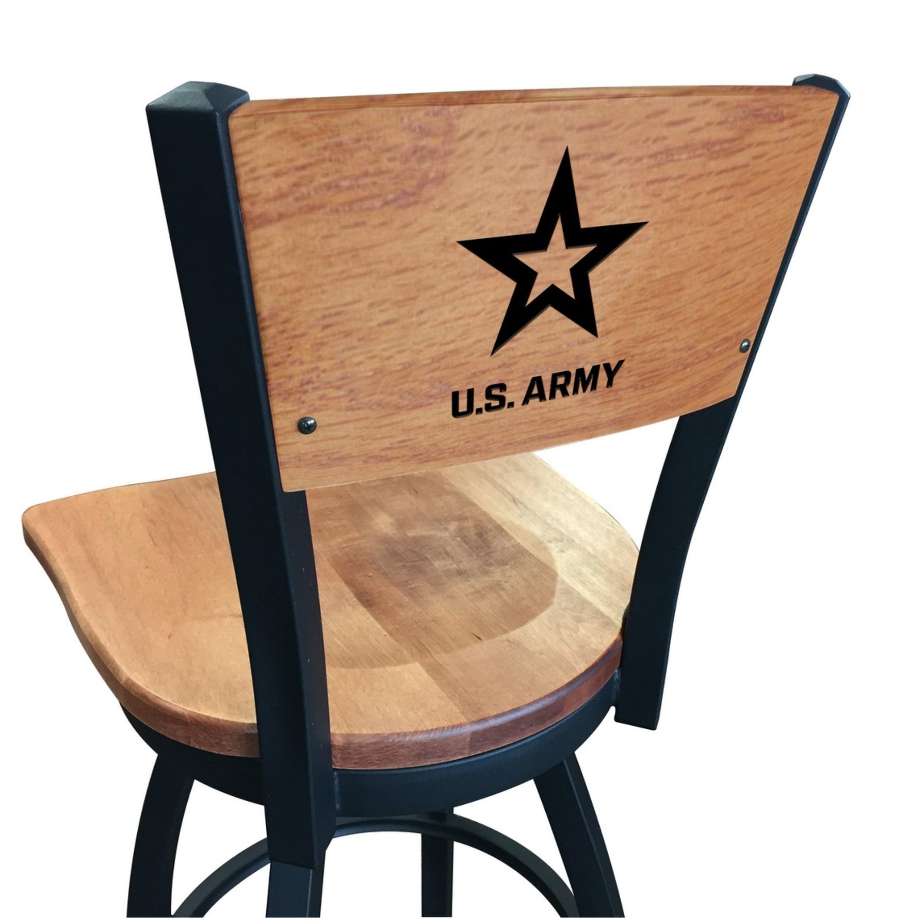 Show your support for our troops with this impressive Army Star Swivel Stool with Laser Engraved Back. Add a touch of class with this Laser Engraved, swivel logo stool that has a medium finished wood back that doesn't just add comfort, but sophistication.