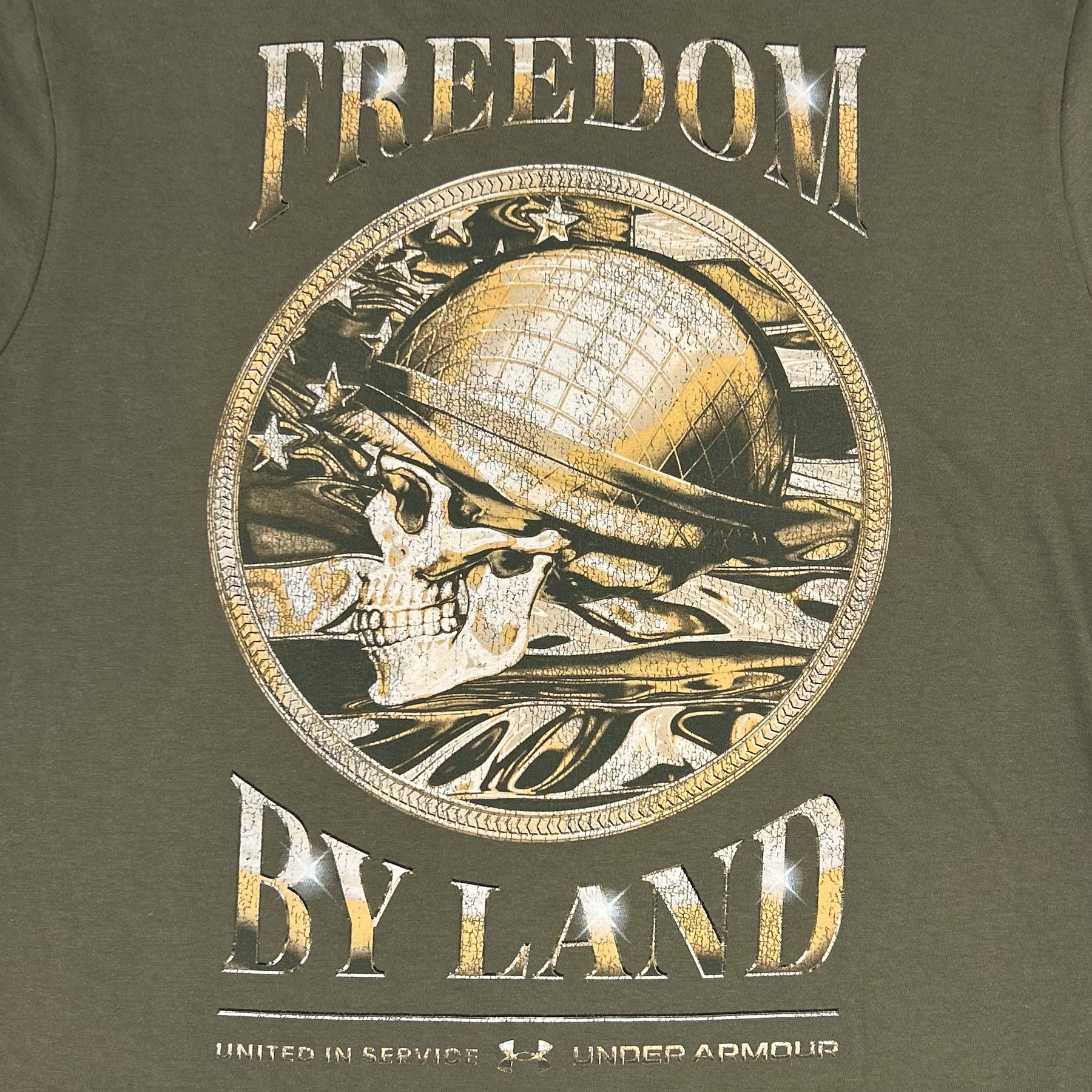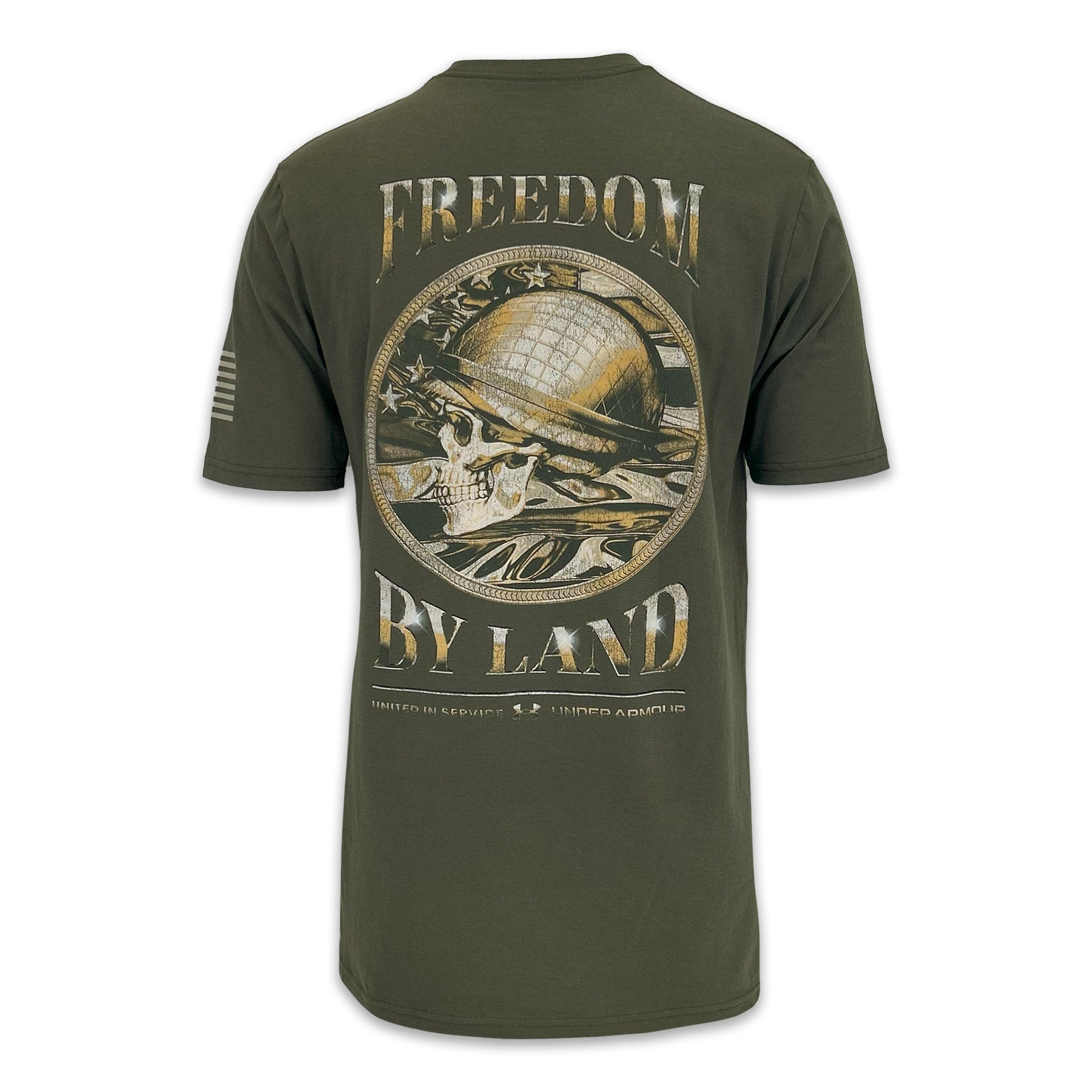 Inspire and support our dedicated men and women in the Army who protect us every day with the Army Under Armour Freedom By Land Skull T-Shirt!