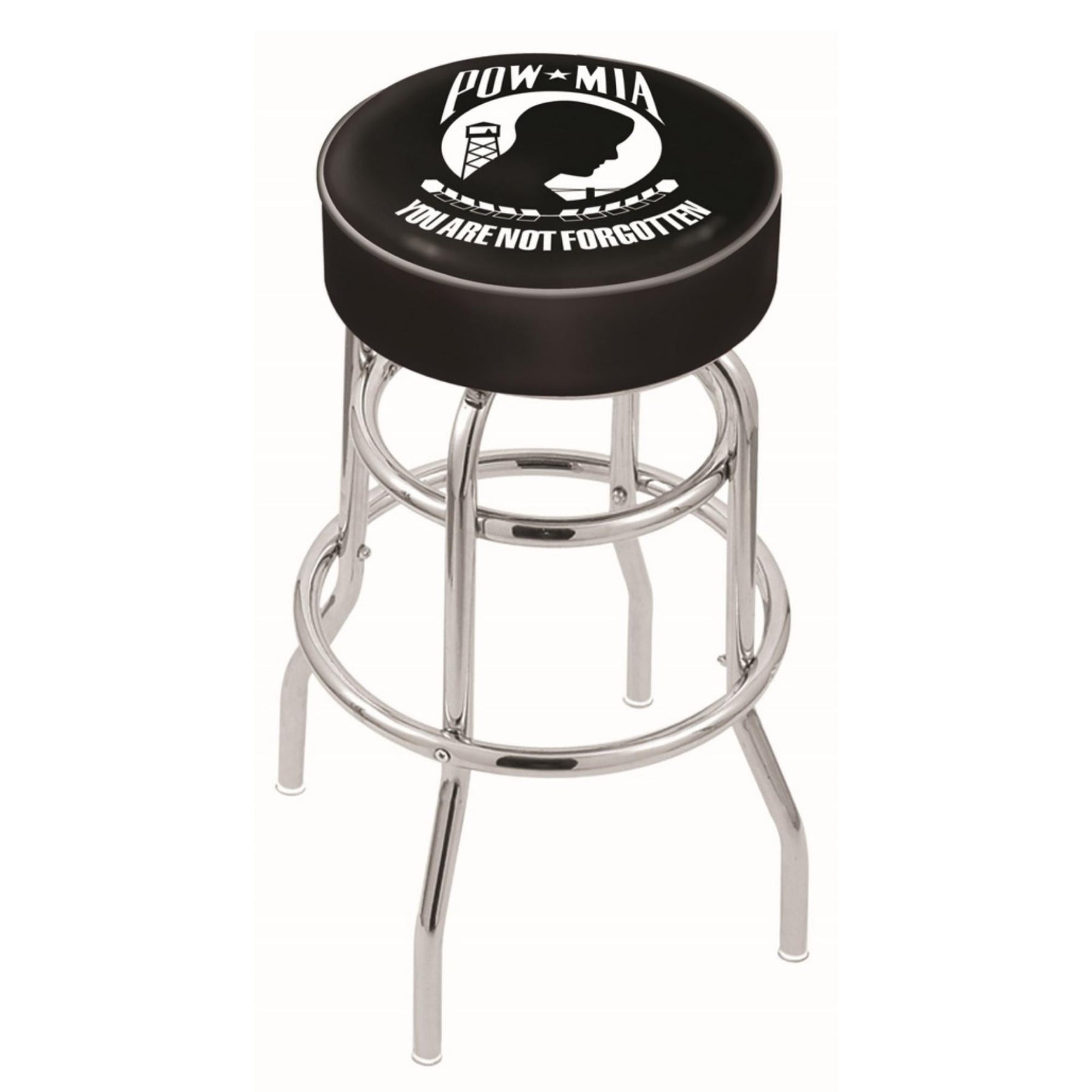 Give your space a patriotic touch with the POW/MIA Backless Stool. Its specially formulated UV vinyl ink produces bright, sharp colors that stay vibrant, and its American craftsmanship guarantees lasting quality. Introduce American craftsmanship to any room with this Swivel Stool!