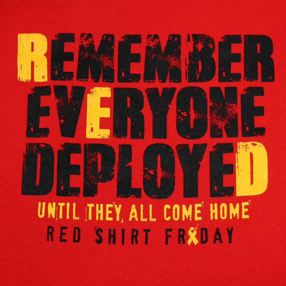 - Screen print Remember Everyone Deployedacross front chest and Until they all come home and Red Shirt Friday