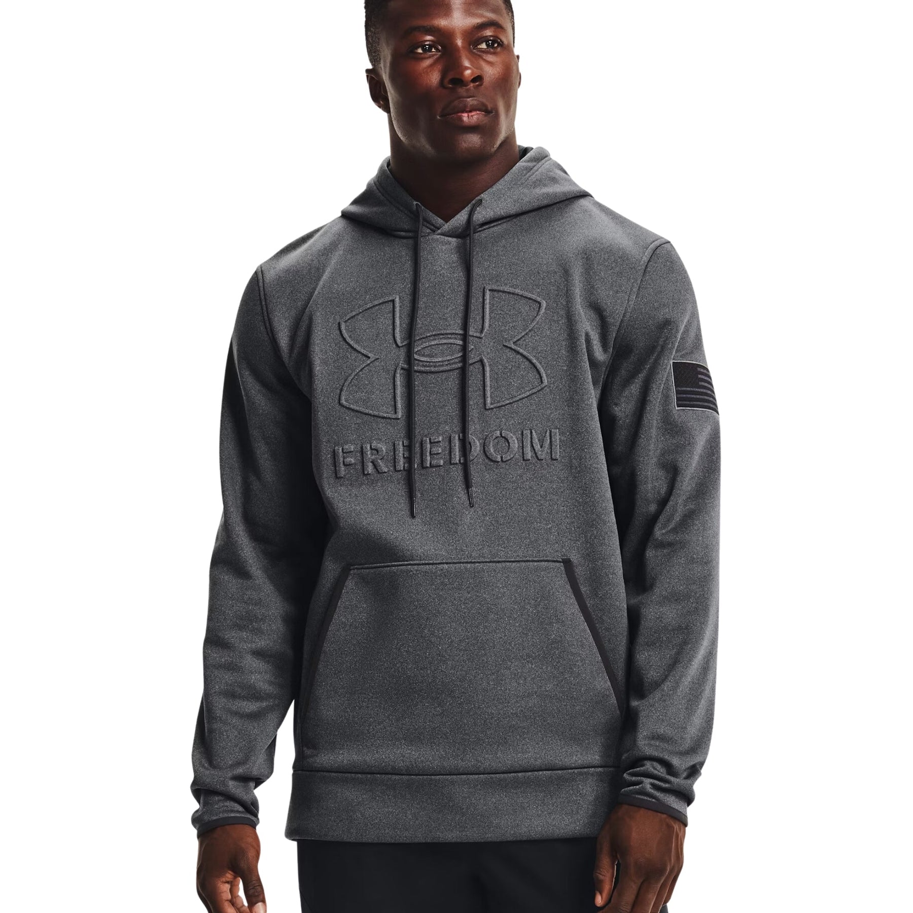 Stay warm and comfortable in this soft, embossed hoodie featuring Under Armour Freedom graphics. Designed for durability and performance, it's perfect for cool weather and everyday wear!