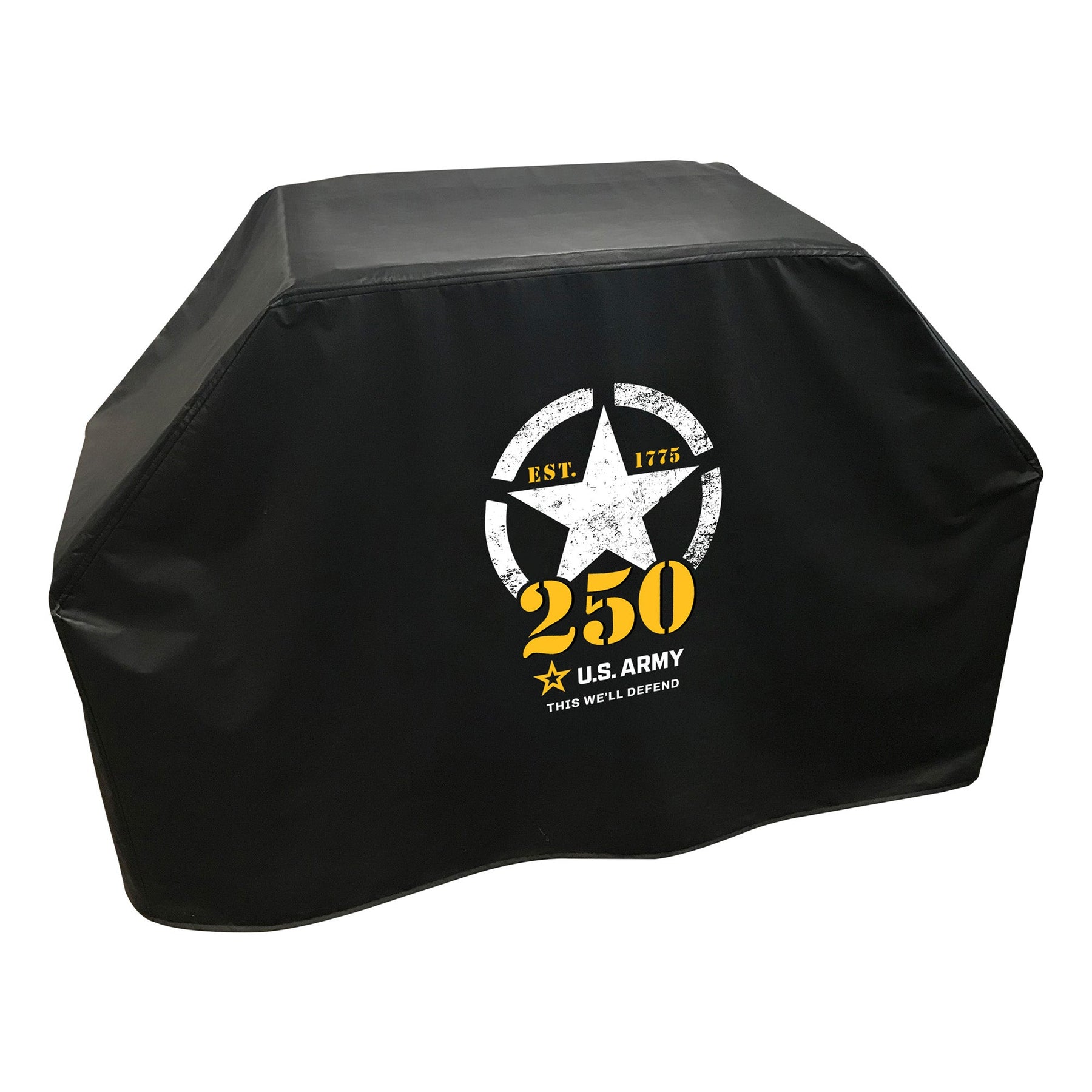 The United States Army 250th Anniversary Grill Cover is a testament to durability, crafted from highly durable, marine-grade vinyl. With its low-maintenance design, it's resistant to UV, water, stains, tears, and abrasions, ensuring your grill remains protected through all conditions. Proudly made in the USA, this grill cover combines rugged functionality with a patriotic touch, making it an excellent choice for Army enthusiasts and grill masters alike!