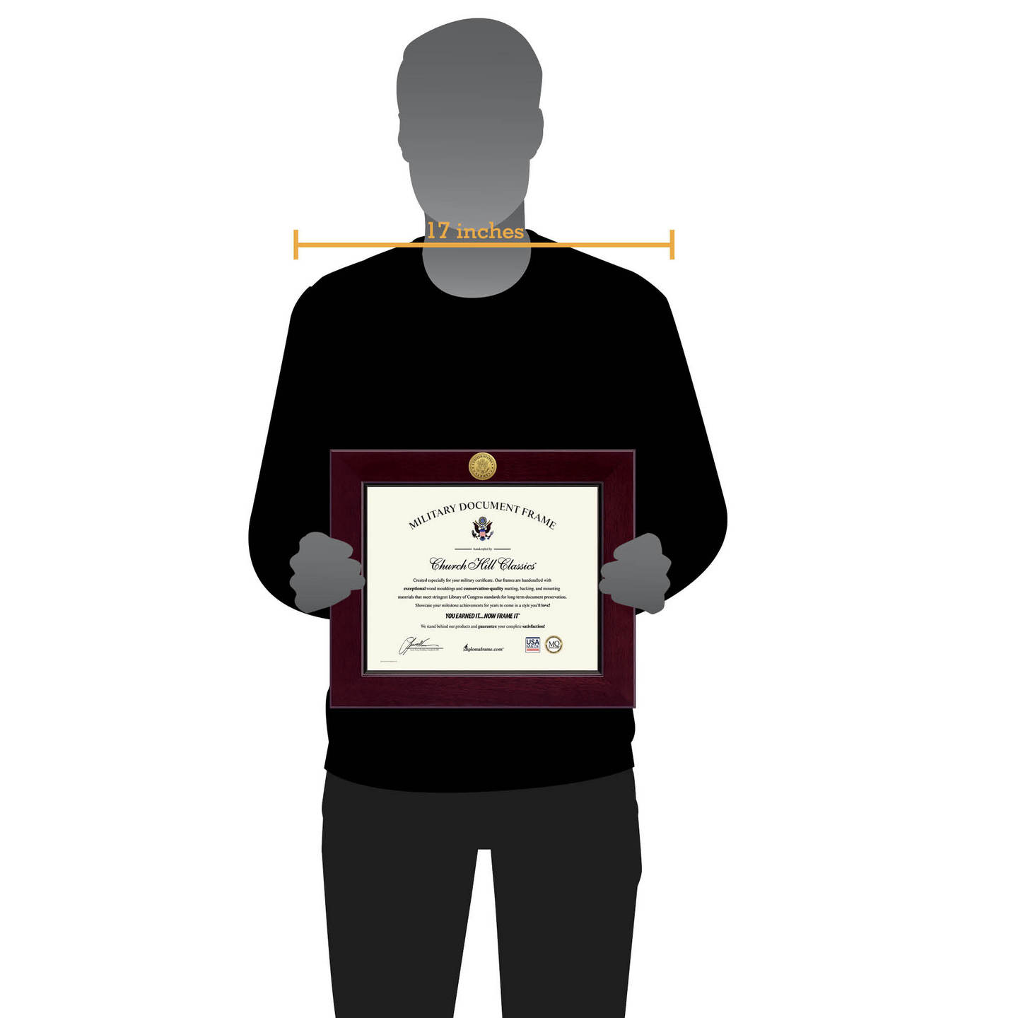 Showcases a two-toned engraved medallion of the United State Army seal. Shown in high-gloss Cordova molding crafted of solid hardwood with a cherry finish. This certificate holder is sure to beautifully show off your certificates!